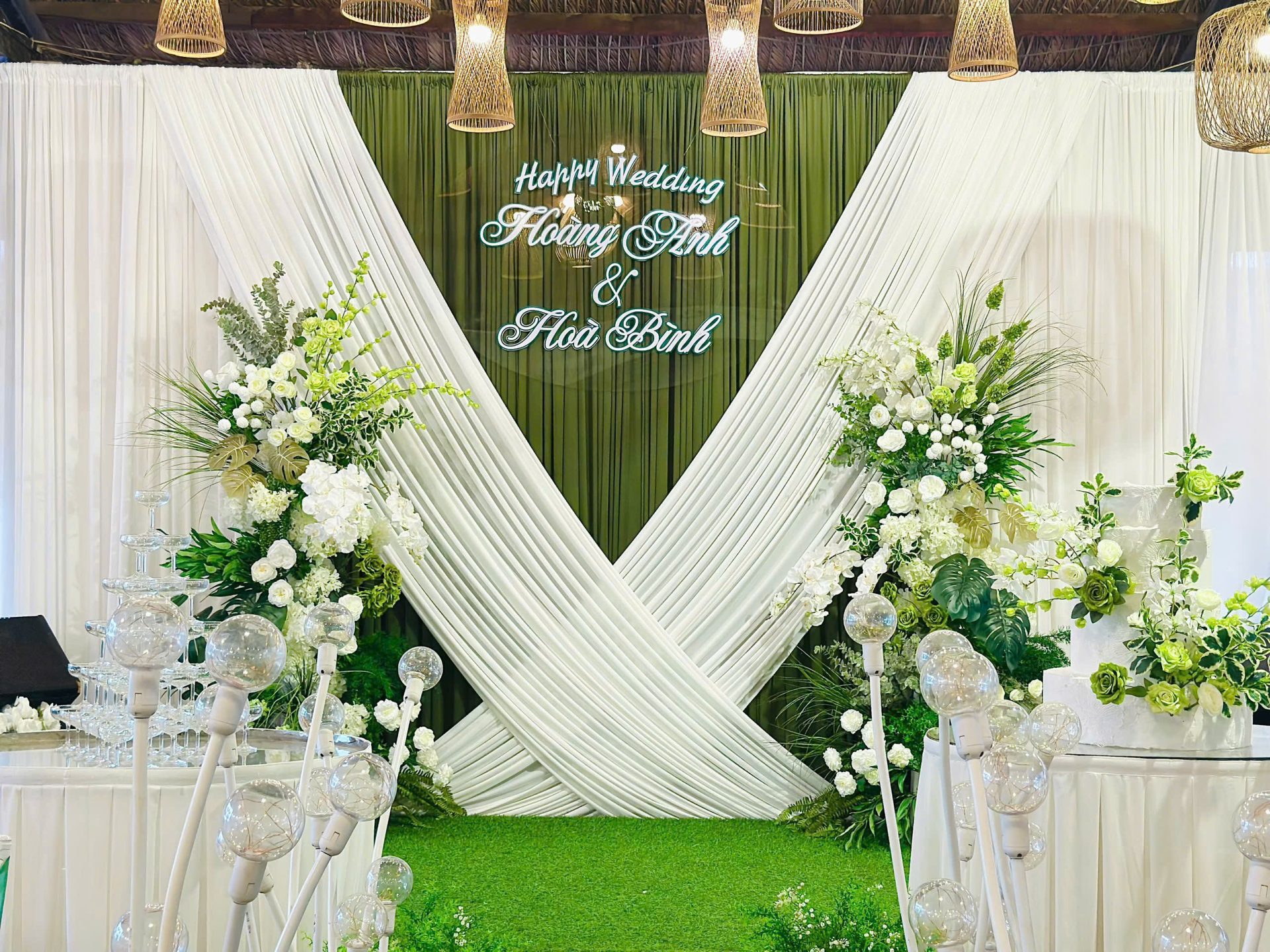 - Trang trí bàn bánh + Bàn rượu