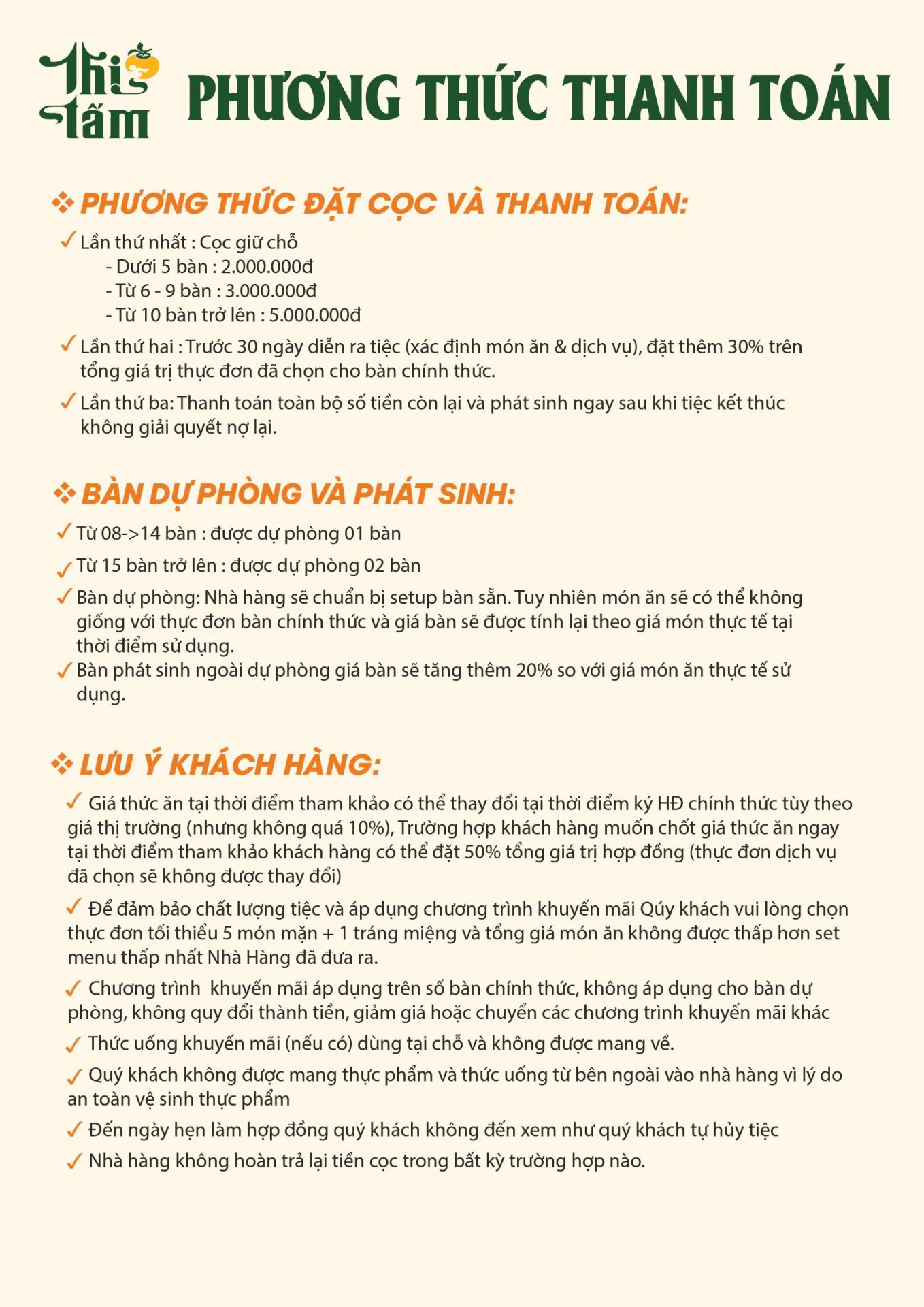 KHI ĐẶT TỪ 15 BÀN TIỆC chính thức